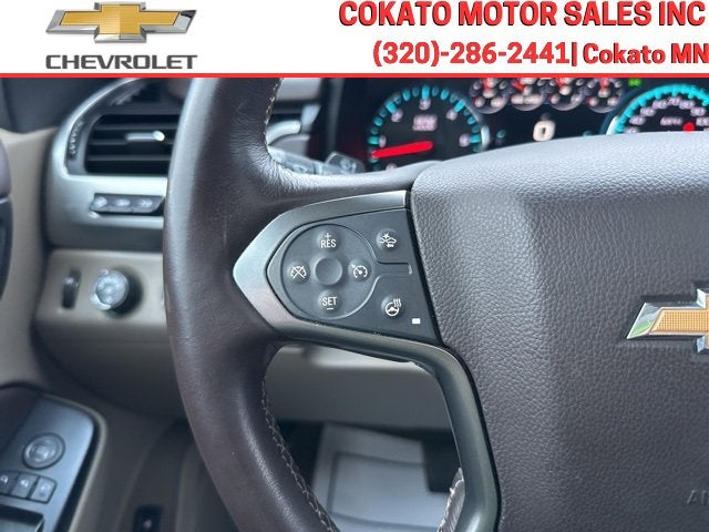 **LOCAL TRADE IN**, **POWER DRIVER & PWR PASS SEAT**, **SUNROOF/MOONROOF**, **NAVIGATION SYSTEM**, **BACKUP CAMERA**, **Bluetooth®**, **ANDROID AUTO/APPLE CARPLAY**, **WIRELESS CHARGING**, **CONVENIENCE PACKAGE**, **DVD ENTERTAINMENT SYSTEM**, **MEMORY PACKAGE**, **REMOTE START**, **BOSE HIGH END SOUND PACKAGE**, **POWER ADJUSTABLE PEDALS**, **110-VOLT POWER OUTLET**, **TRAILER PACKAGE**, **TRAILER BRAKE CONTROLLER**, **FRONT PARK ASSIST**, **REAR PARK ASSIST**, **HEATED STEERING WHEEL**, **HEATED SEATS**, **COOLED SEATS**, **REAR OUTBOARD HEATED SEATS**, **LANE DEPARTURE WARNING**, **FORWARD COLLISION ALERT**, **SIDE BLIND ZONE ALERT**, **LANE CHANGE ALERT**, **HEAD-UP DISPLAY**, **POWER REAR LIFTGATE**, **HANDS FREE POWER LIFTGATE**, Suburban Premier, 4D Sport Utility, EcoTec3 5.3L V8, 6-Speed Automatic Electronic with Overdrive, 4WD, Black, Cocoa/Dune Leather. 4WD 6-Speed Automatic Electronic with Overdrive EcoTec3 5.3L V8